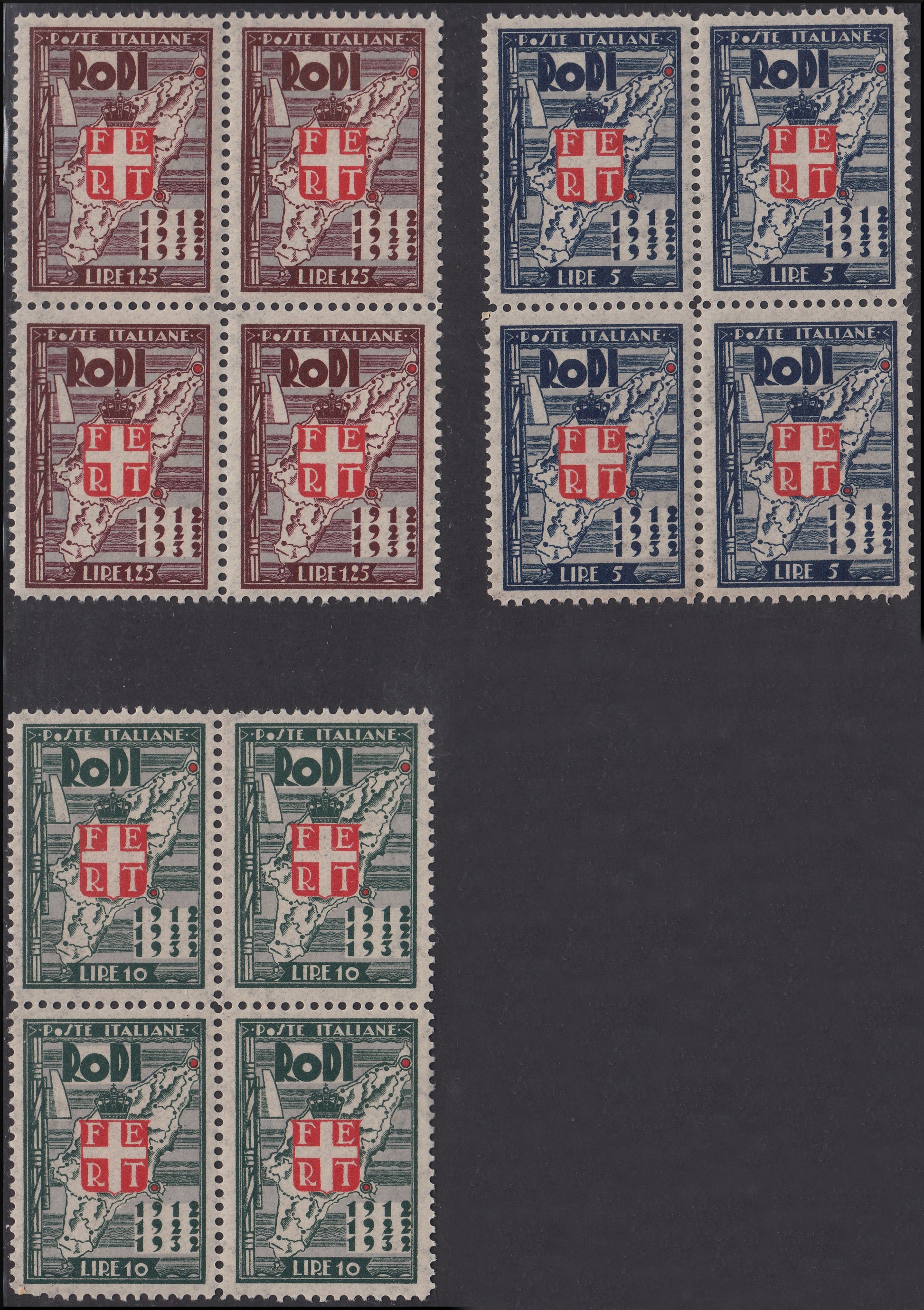 1932 - Ventennale dell'occupazione e decennale della rivoluzione fascista, serietta (escluso l'alto valore) in quartine nuove gomma integra integre