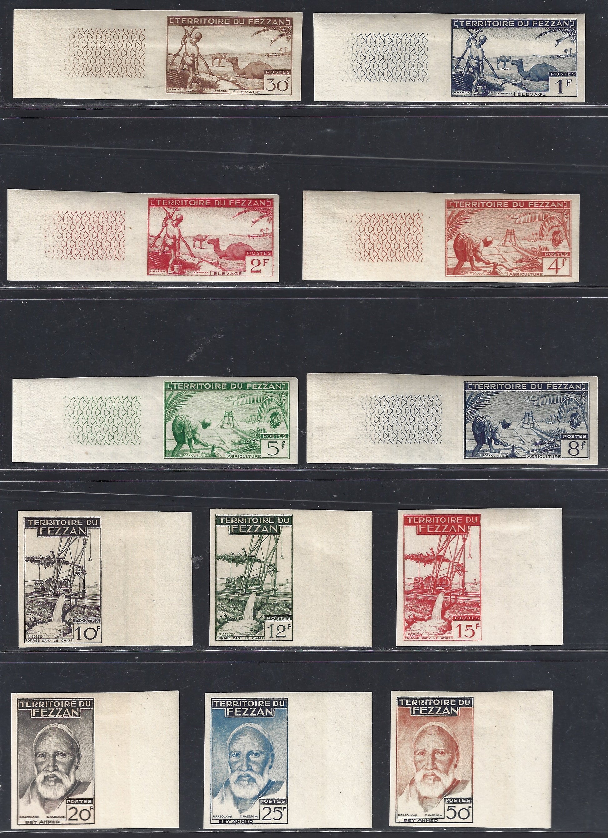 Fezzan4 - 1951 - Occupazione francese, seconda emissione per il Fezzan non dentellata nuova con linguella (29/40).