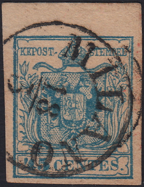 1850 - I emissione c. 45 azzurro III tipo usato MILANO 1/7