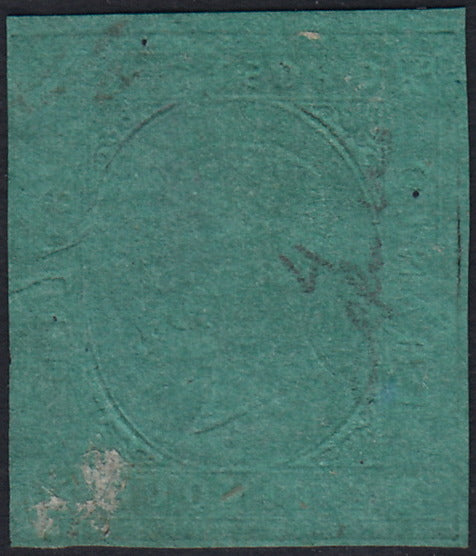 Sard1173 - 1853 - II emissione c. 5 verde usato TORINO 5 OTT. 54 (4)