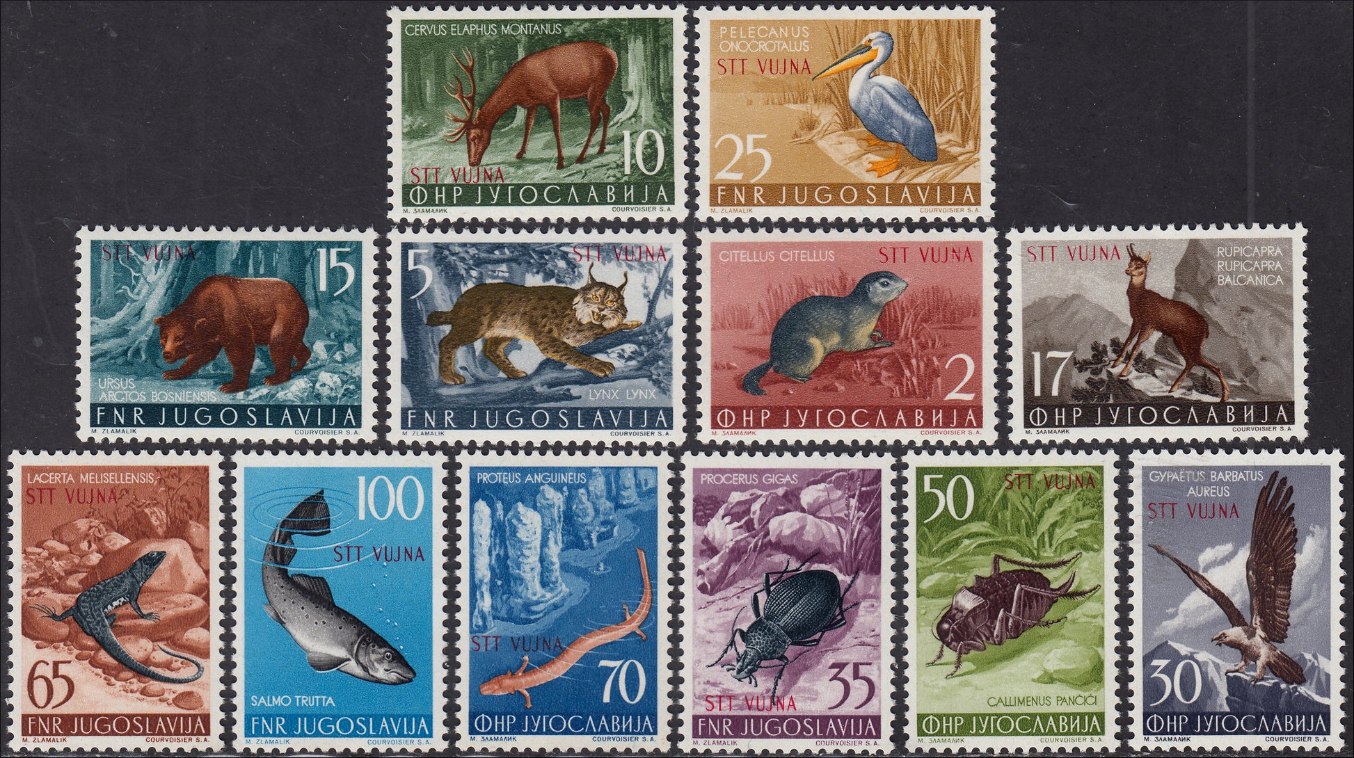 1954 - Animali, serie di 12 valori con soprastampa in rosso VUJA - STT nuovi gomma integra