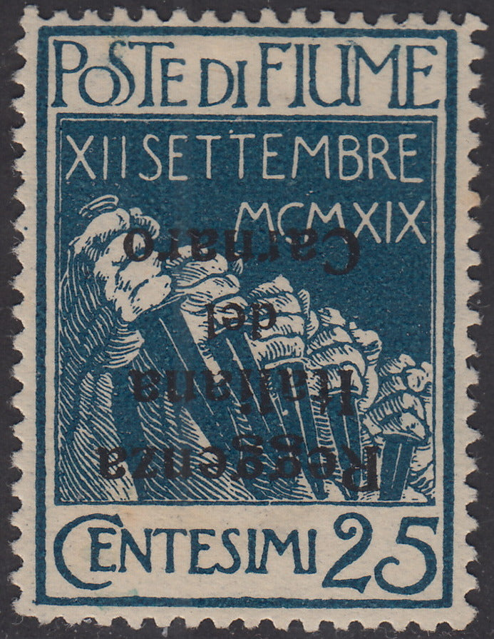 1920 - Legionari di Fiume soprastampati Reggenza Italiana del Carnaro, c. 25 indaco con soprastampa nera capovolta nuovo con gomma originale