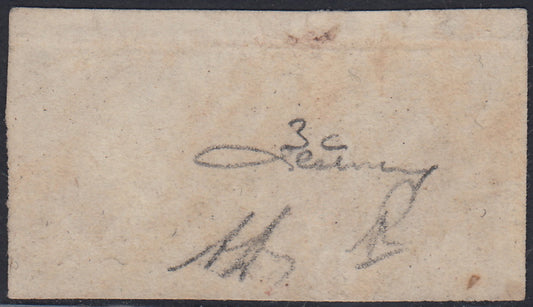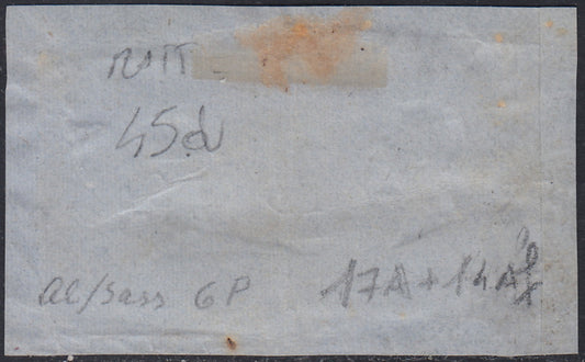 Sard513 - 1851 - Effigy of Vittorio Emanuele II facing right, 1st issue c. 20 dark light blue + c. 40 lilac pink two copies on fragment (2h + 3d)