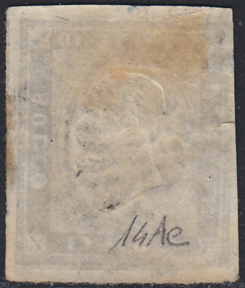 1851 - Effigy of Vittorio Emanuele II facing right, 1st issue c. 20 light blue used late 8/20/57 (2, R2 points)