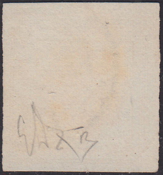 PP25 - 1859 - Shield of Savoy surmounted by a royal crown, c. 80 used orange bistro with nine-bar mute cancel and Savoy shield in the center (18).