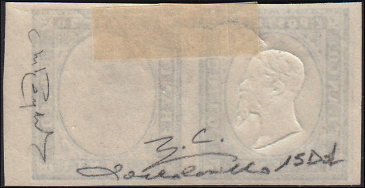 IV issue, c. 20 greyish cobalt II plate edition 1861 horizontal pair of which one example without effigy, new (15Dd)
