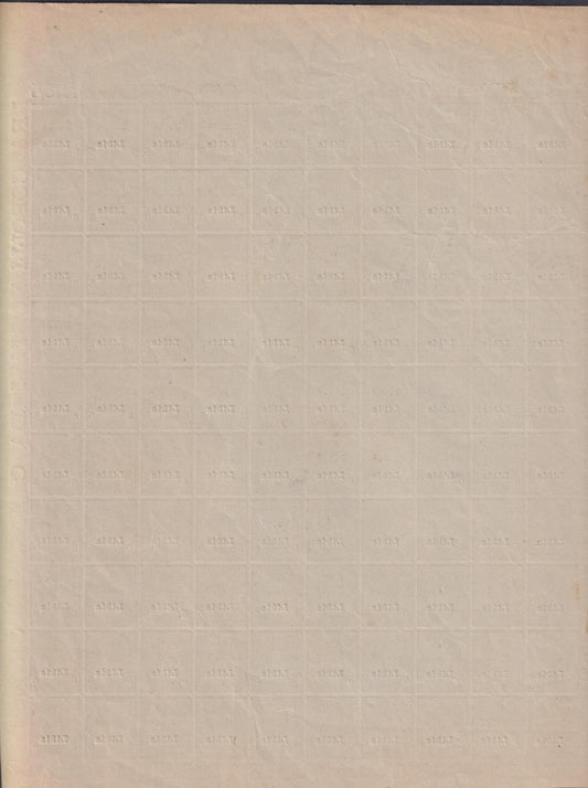 Libya - Leoni c. 5 green, complete sheet of 100 copies with plate number 7255 not perforated overprinted "Libia"