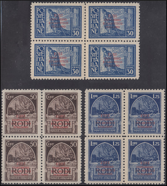 Egeo - Italian Eucharistic Congress, complete set of seven values in new, intact quadruplets (30/36)