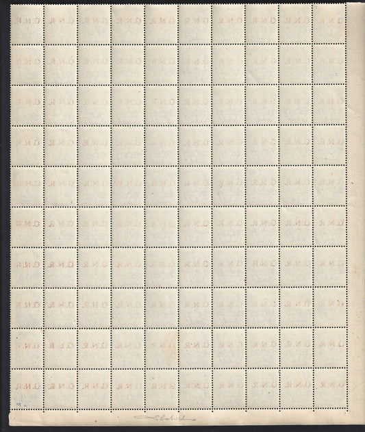1944 - GNR Verona L. 1.25 light blue complete sheet of 100 copies, new with full gum intact. (480).