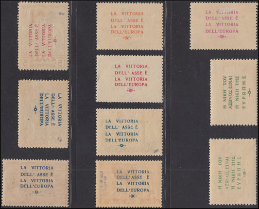 EST17 - 1941 - Italian occupation of the Ionian Islands, Mythological of Greece with overprintIsola Italiana di PAXO ano XIX° and fascist mottos on the reverse, series of 10 copies with original rubber, unofficial issue.