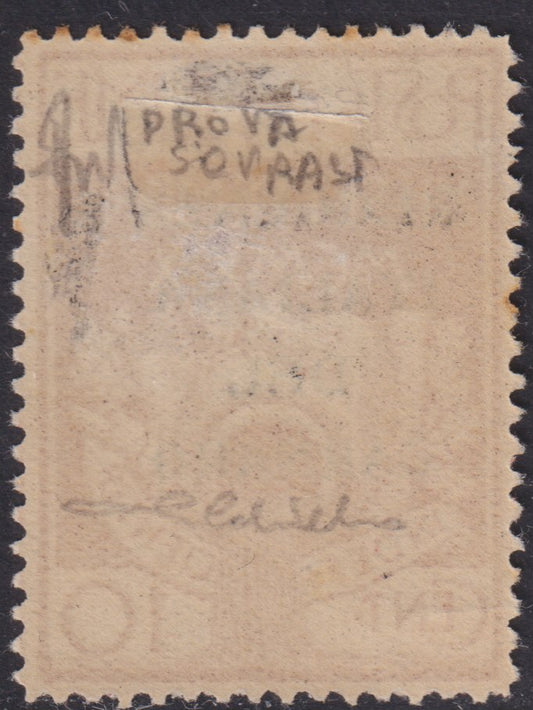 1930 – Virgilio, Ten cuttings of an advertising poster on thick cardboard with a perforated impression printed in black in the outline and diagonally the wording SAGGIO in block capitals.