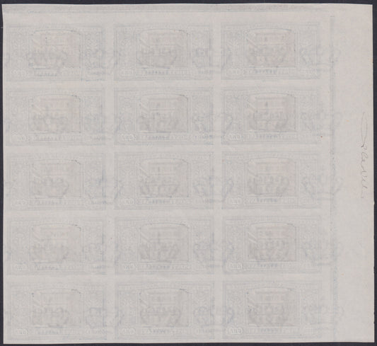 F6-166- 1923 - Fiftieth anniversary of the death of Alessandro Manzoni, L. 1 light blue not perforated block of 15 new examples not gummed (155d)