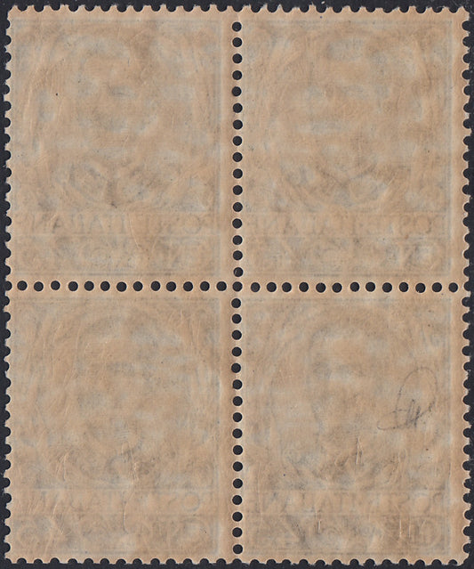 RN65 - 1917-20 - Effige di V. E. III volta a sinistra, blocco di 5 esemplari del c. 60 carminio con varietà " stampa incopleta o evanescente " nuovo con gomma integra (111b)