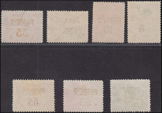Fiume142 - 1919 - Allegories and Views, type "C" paper, hand overprinted Franco and cipher, seven values used (C75, C77, C81, C83,/86