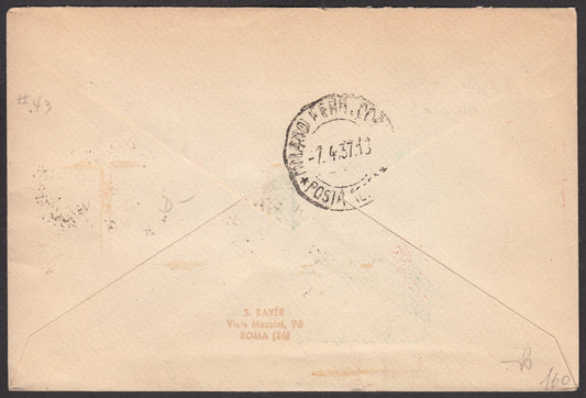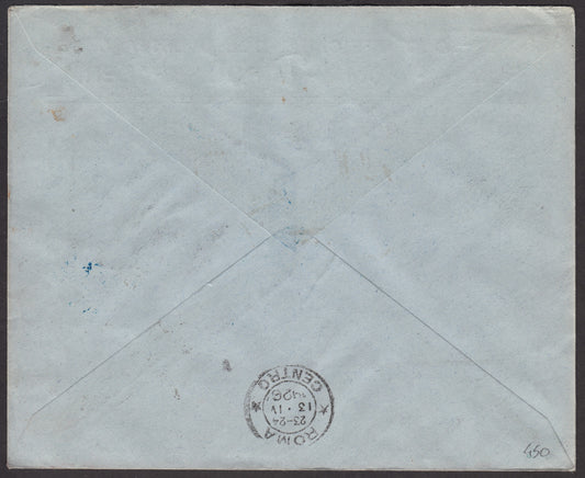 1926 - First flight Genoa Rome 13/4/1926 with postage made up of Anno Santo c. 60 + 30 carmine and brown + P.Aerea c. 60 gray (172 +PA3)