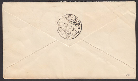 1931 - First flight Genoa - Gibraltar 17/5/31 stamped with imperial c. 20 carmine + c. 25 green + PA L. 1 violet (247 + 248 + PA14)