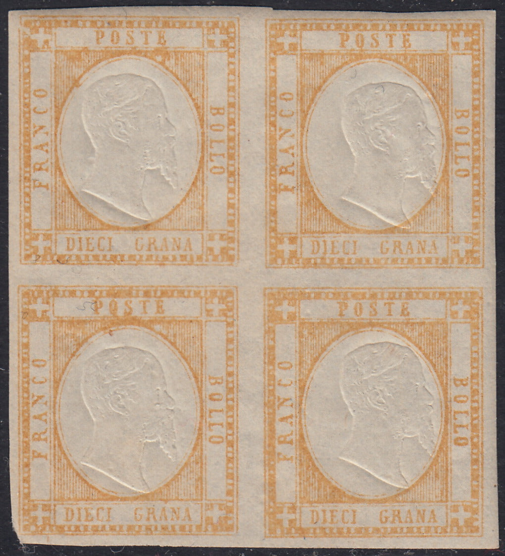 PN95 - 1861 - 50 grain gray block of four new copies with beautiful original rubber (24).