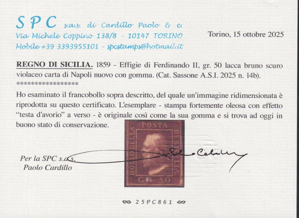 1859 - 10 grain indigo black paper from Naples new with original gum (12a)