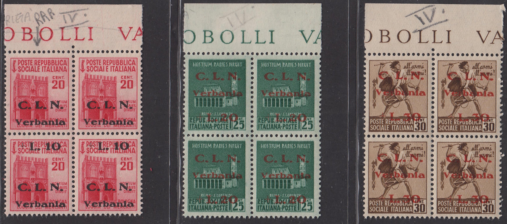 1945 - CLN Imperia, Imperiale L. 2.55 green gray complete sheet of 100 copies, including all possible varieties, new with intact gum
