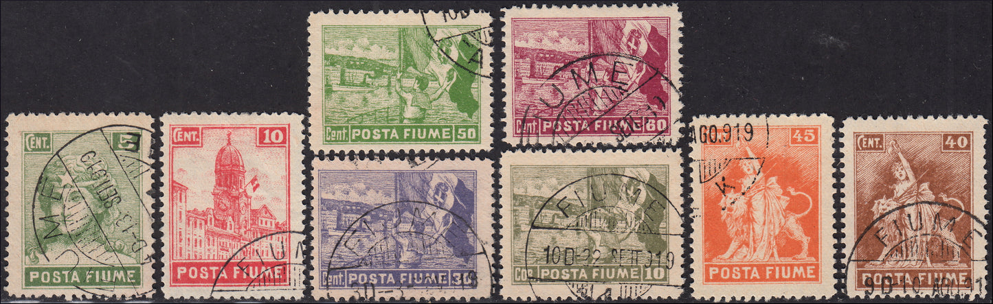 Fiume 1919 - Allegories and views series of values on type A paper with the words "Posta Fiume" used (49/56)