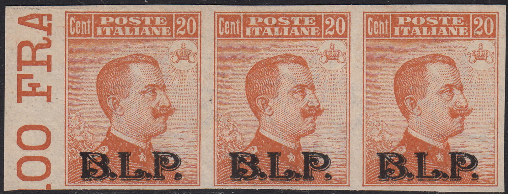 RN179 - 1922/23 - Michetti type stamp of the Kingdom c. 20 orange, light blue overprint BLP lithographic type II, new with intact gum (7)