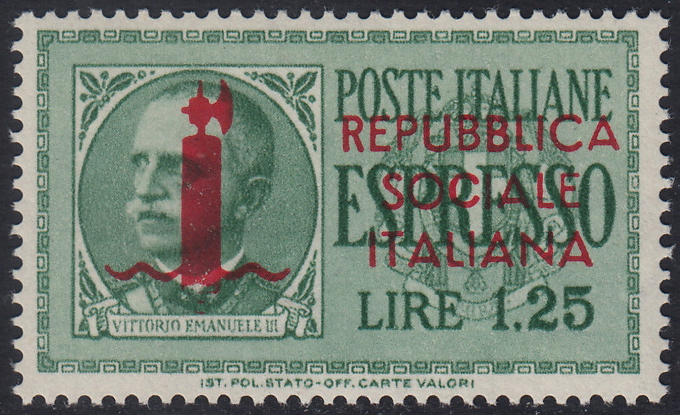 1944 - GNR Brescia Espresso of L. 1.25 complete sheet of 50 copies, new with full gum intact. (19/II).