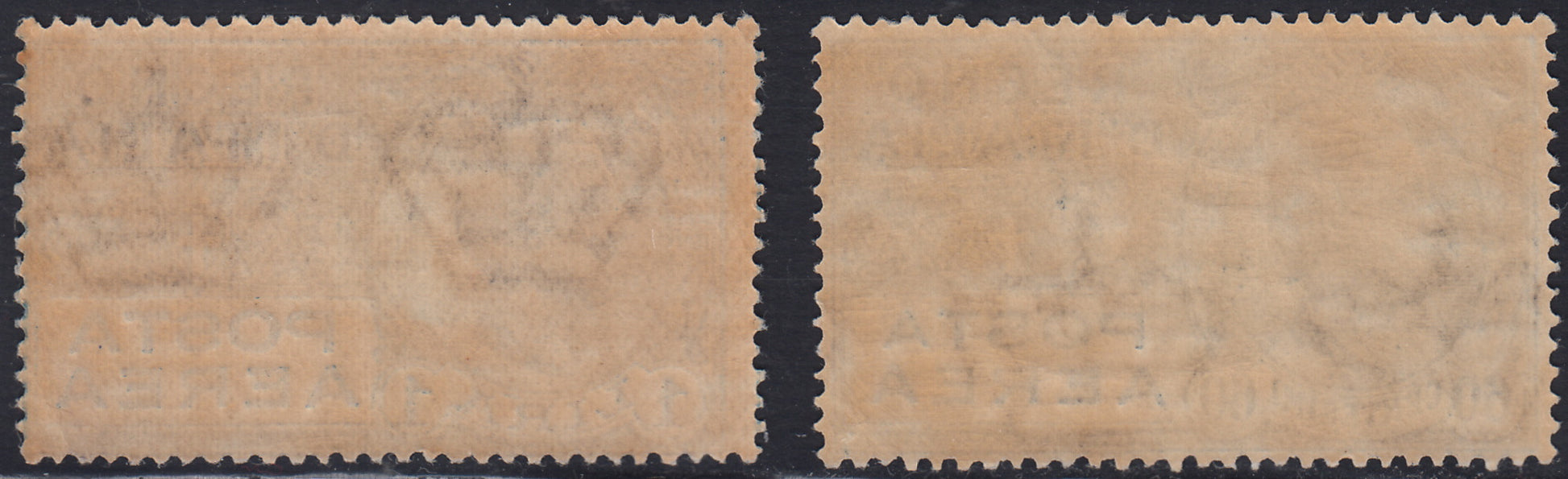 1930 – Virgilio, Ten cuttings of an advertising poster on thick cardboard with a perforated impression printed in black in the outline and diagonally the wording SAGGIO in block capitals.