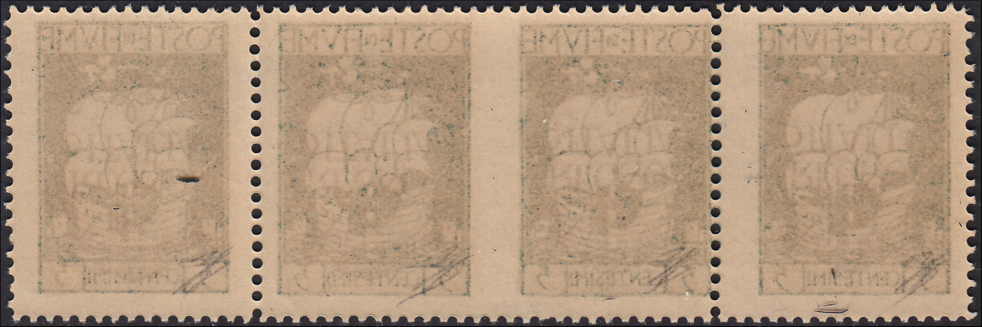 Fiume265 - 1920 - Sello de la serie Legionarios sobreimpreso por la Regencia italiana de Carnaro, L.10 sobre c.20 ocre con números en primer plano, nuevo sin goma (146A).