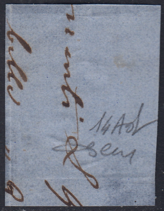 1860 - 1/2 tornese azul oscuro llamado "Croce di Savoia" utilizado en el periódico IL PAESE del 1/1/1861 (16b)