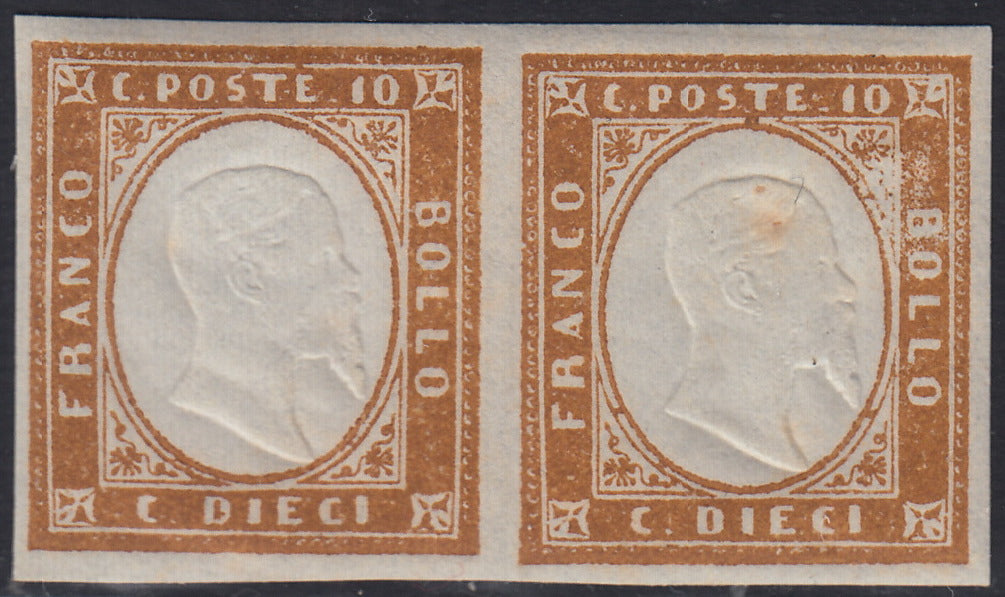 1863 - IV emissione c. 10 bistro II tavola coppia orizzontale nuova con gomma integra