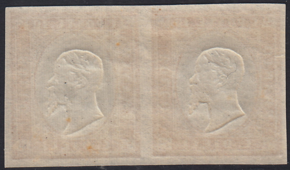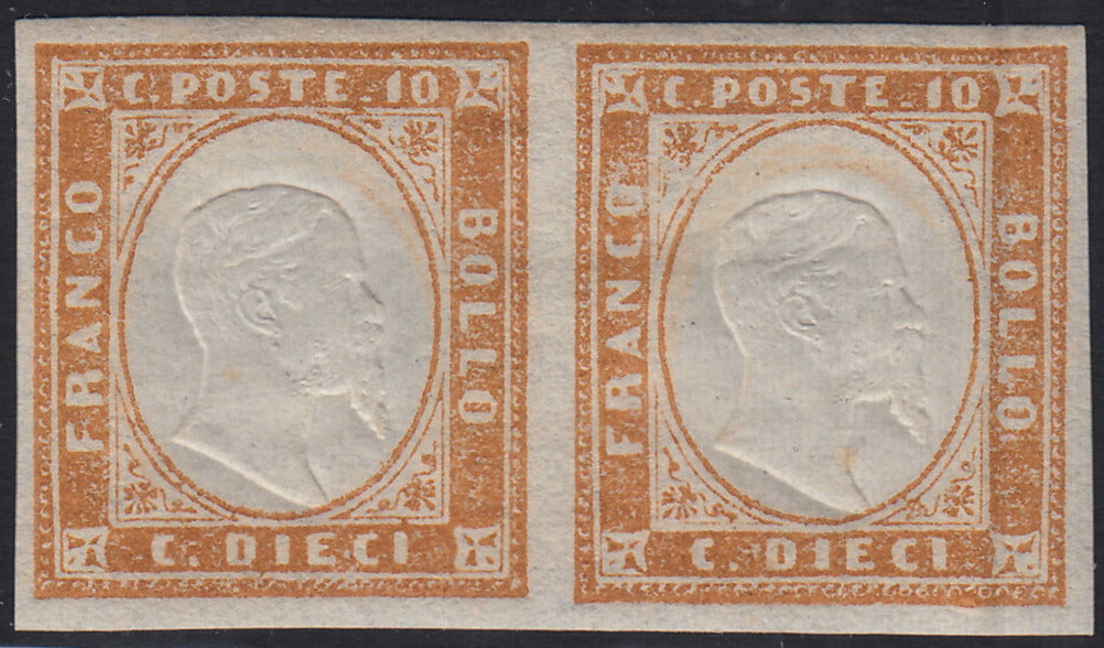 1863 - IV emissione c. 10 bistro chiaro II tavola coppia orizzontale nuova con gomma integra