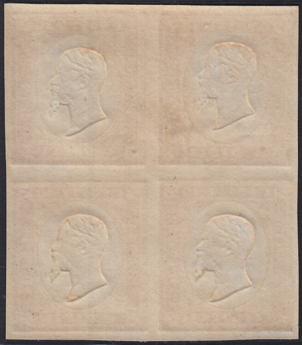 1863 - IV emissione c. 10 bistro II tavola blocco di quattro nuovo con gomma integra