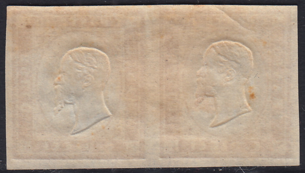 1863 - IV emissione c. 10 bistro II tavola coppia orizzontale nuova con gomma integra