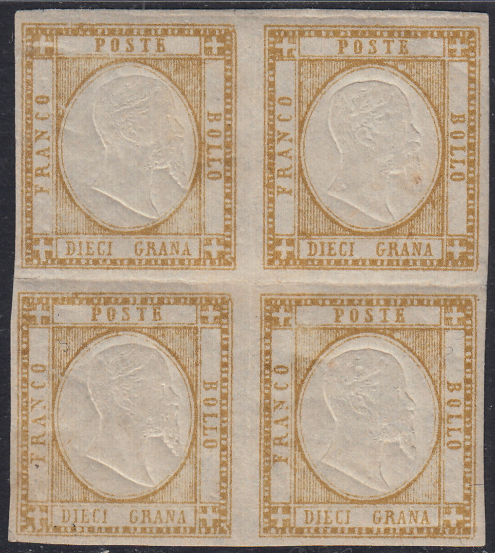 1861 - 10 grana bistro oliva blocco idi quattro esemplari nuovo con gomma, colore splendido