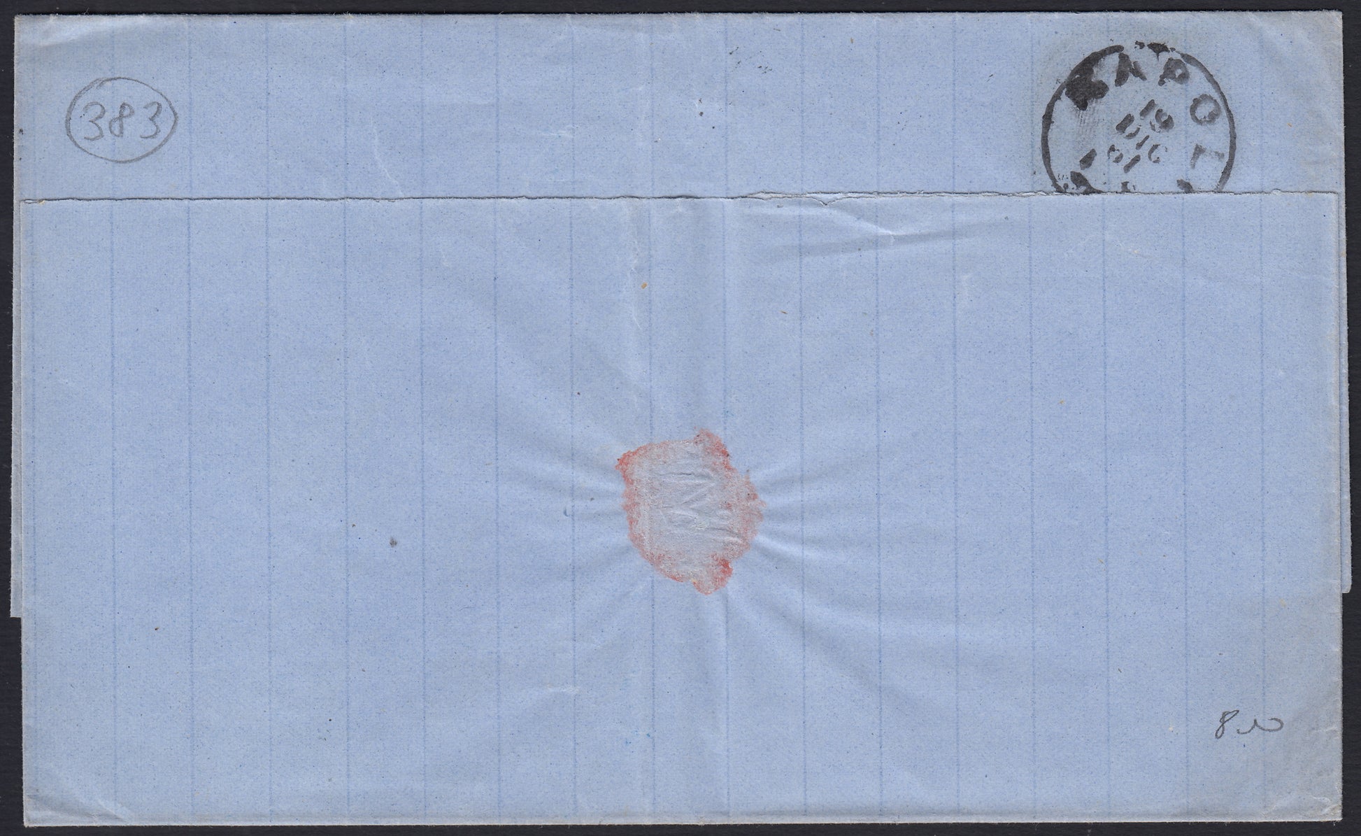 1861 - Lettera spedita da Bisceglie per Napoli 17/12/61 affrancata con gr. 2 azzurro ardesia