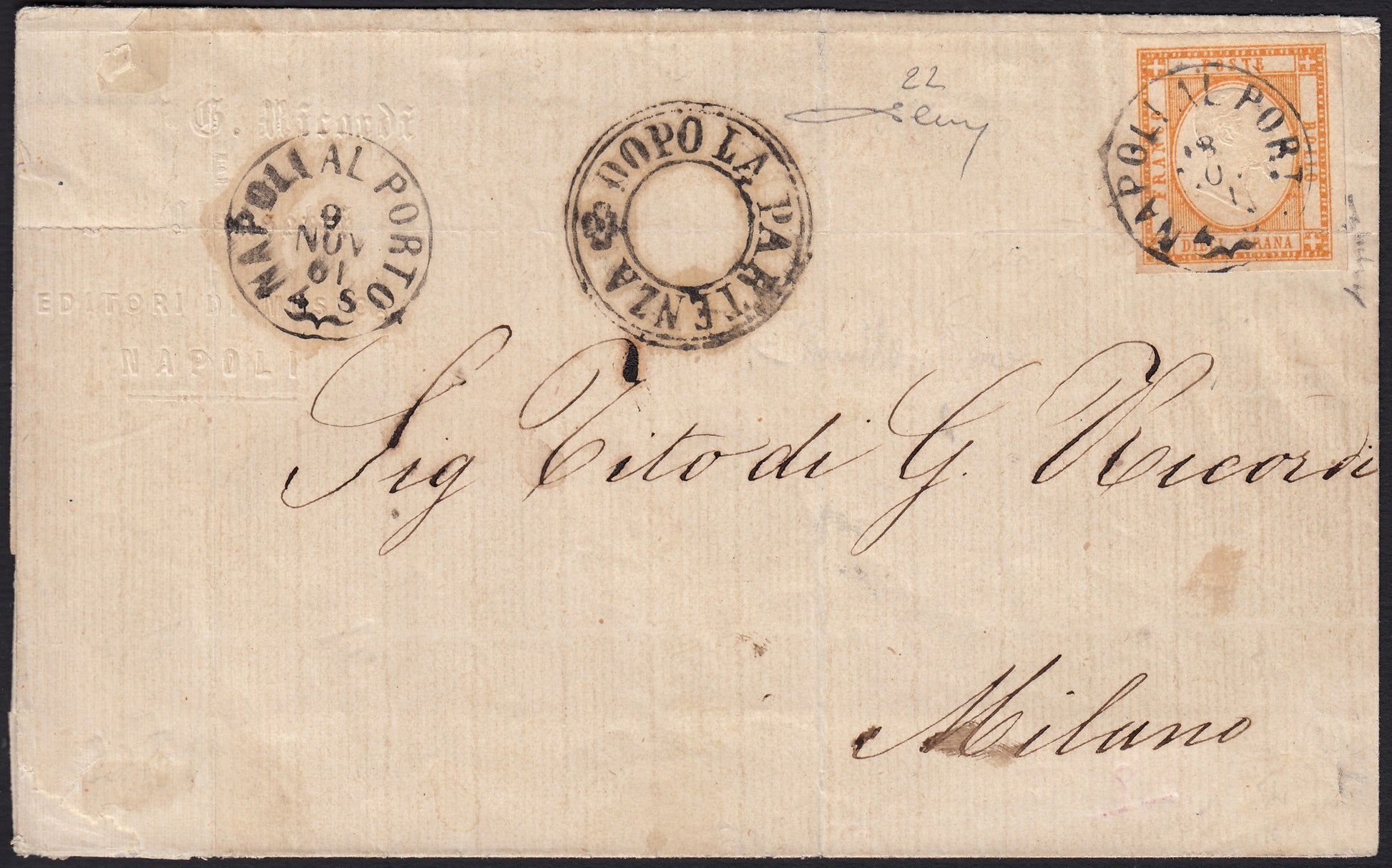 BO2515_8 - 1861 - Lettera spedita da Napoli per Milano 9/11/61 affrancata con 10 grana arancio (22)
