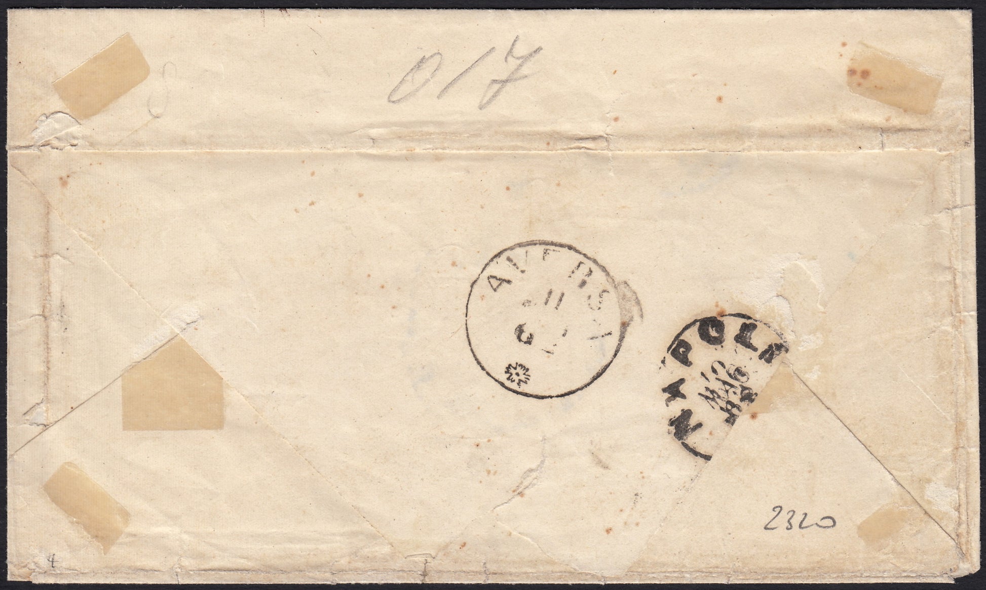 BO255_12 - 1862 - Lettera spedita da Tropea per Aversa 6/5/62 affrancata con gr. 2 azzurro striscia orizzontale di tre (20b)