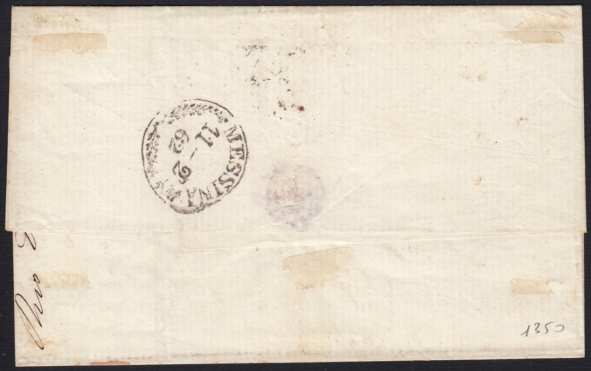 1862 - Lettera spedita da Napoli al Porto per Messina 10/2/62 affrancata con gr. 2 grana azzurro chiaro + gr. 5 rosso carminio