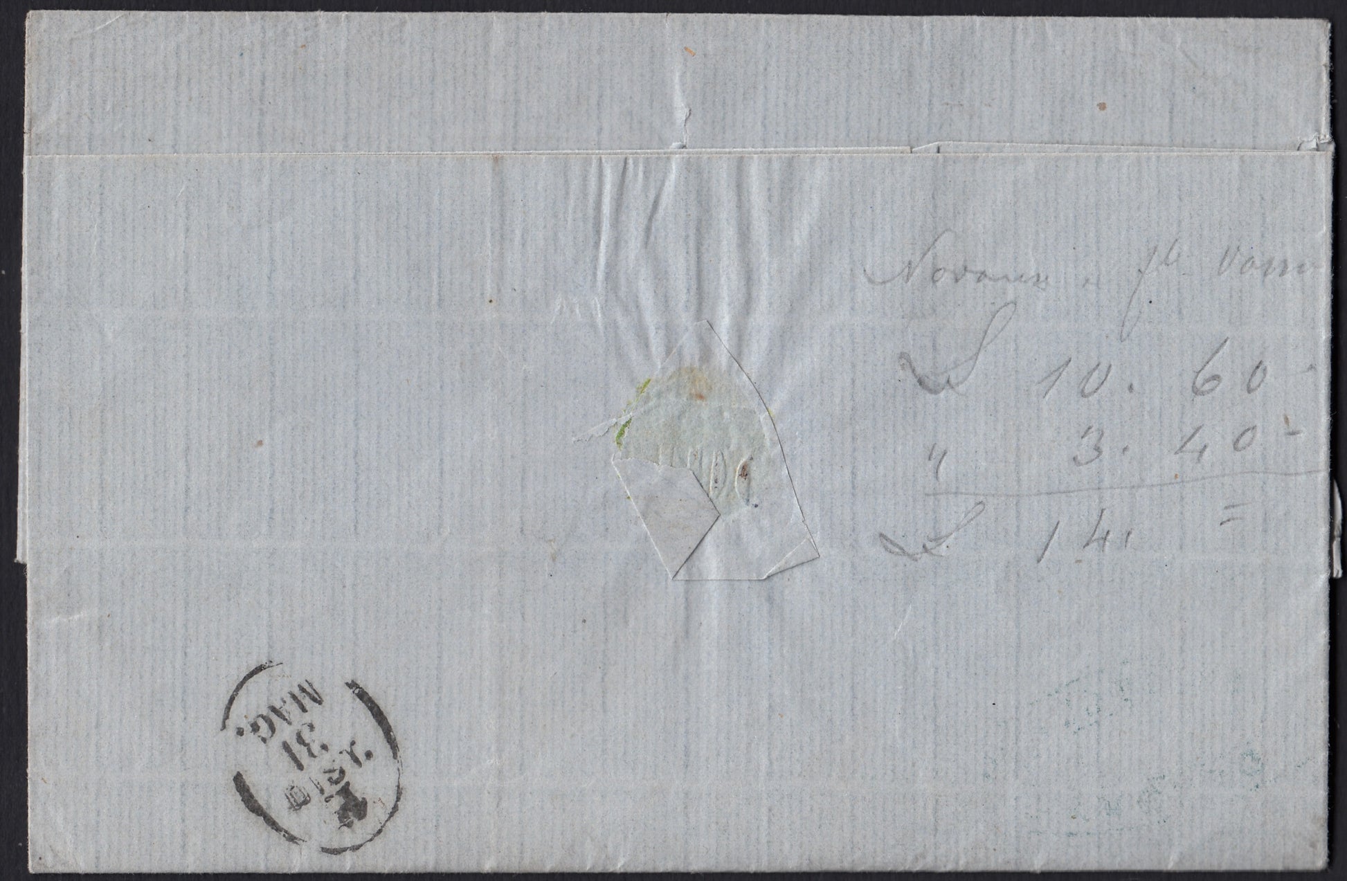 CG144 - 1865 - Lettera spedita da Genova per Torino 30/5/65 affrancata con c. 20 su 15 azzurro del III tipo coppia verticale (23)