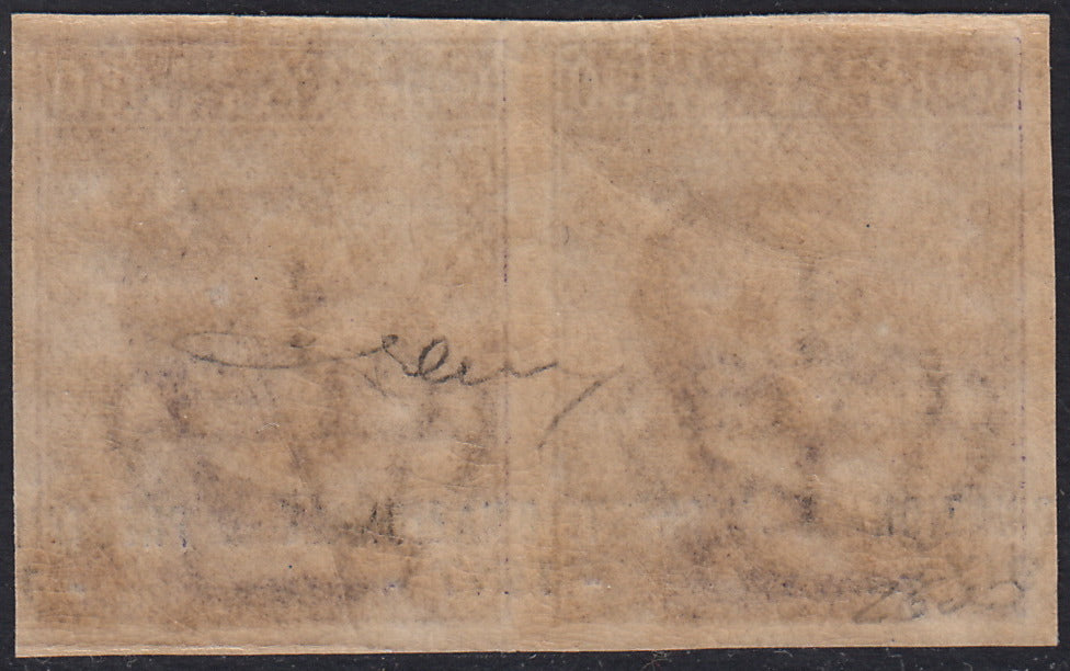 CG63 - Regno d'Italia, c. 50 violetto tipo Michetti coppia orizzontale non dentellata con soprastampa PRESTITO NAZIONALE spostata a destra nuova con gomma