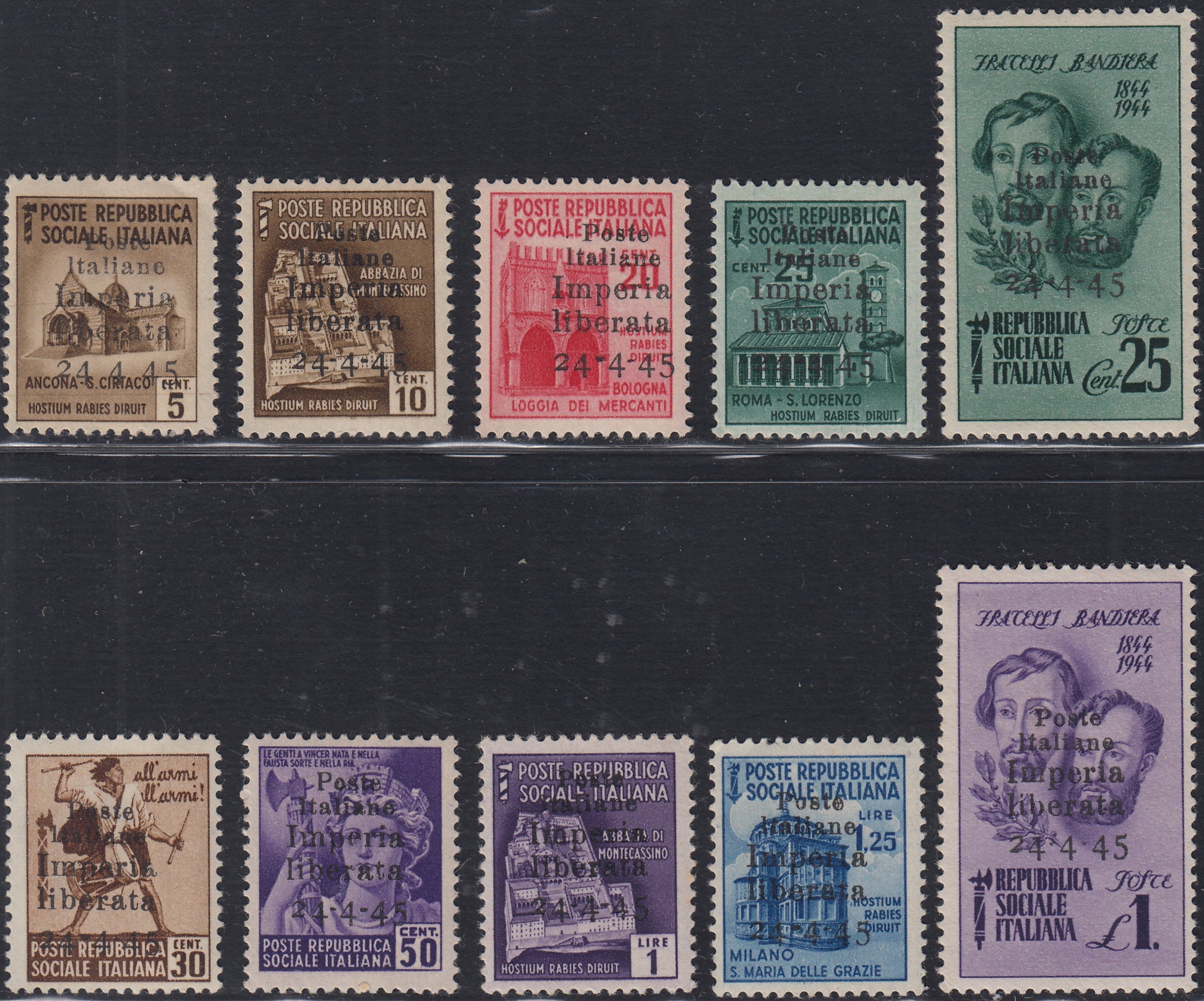 1945 - CLN Imperia, francobolli di Regno soprastampati "CLN Imperia" nuovi con gomma originale