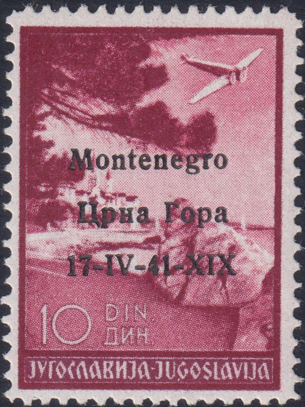 1941 - Occupazione Italiana del Montenegro, Posta Aerea 10d. bruno carminio dentellatura 12 3/4 x 12 1/2 nuovo gomma integra
