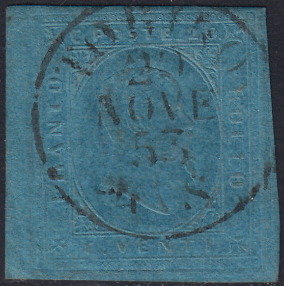 EB79 - 1853 - II emissione c. 20 azzurro usato a TORINO 20/11/53 (5)