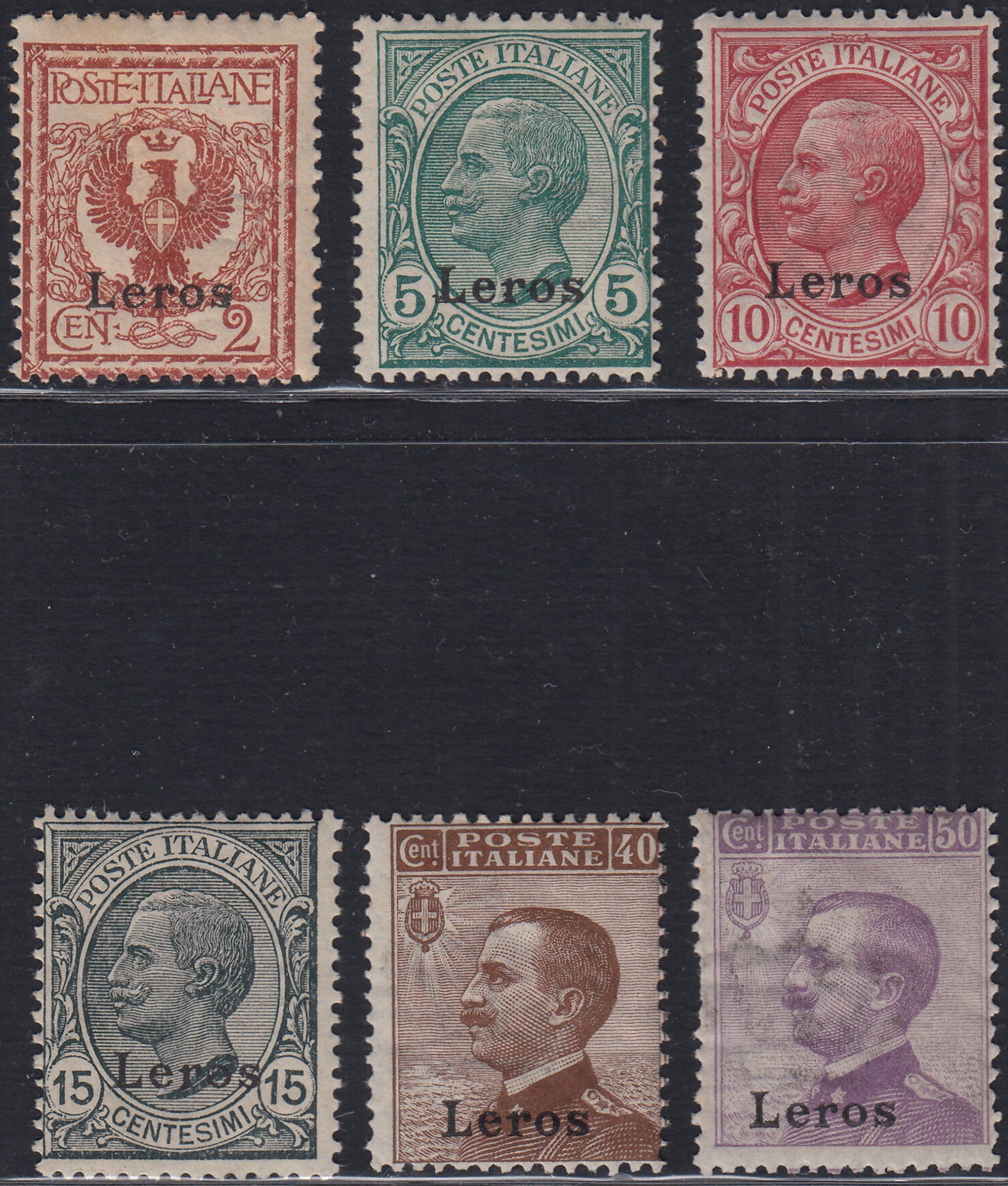 1912 - Francobolli di Regno soprastampati "Leros", sei valori nuovi gomma integra