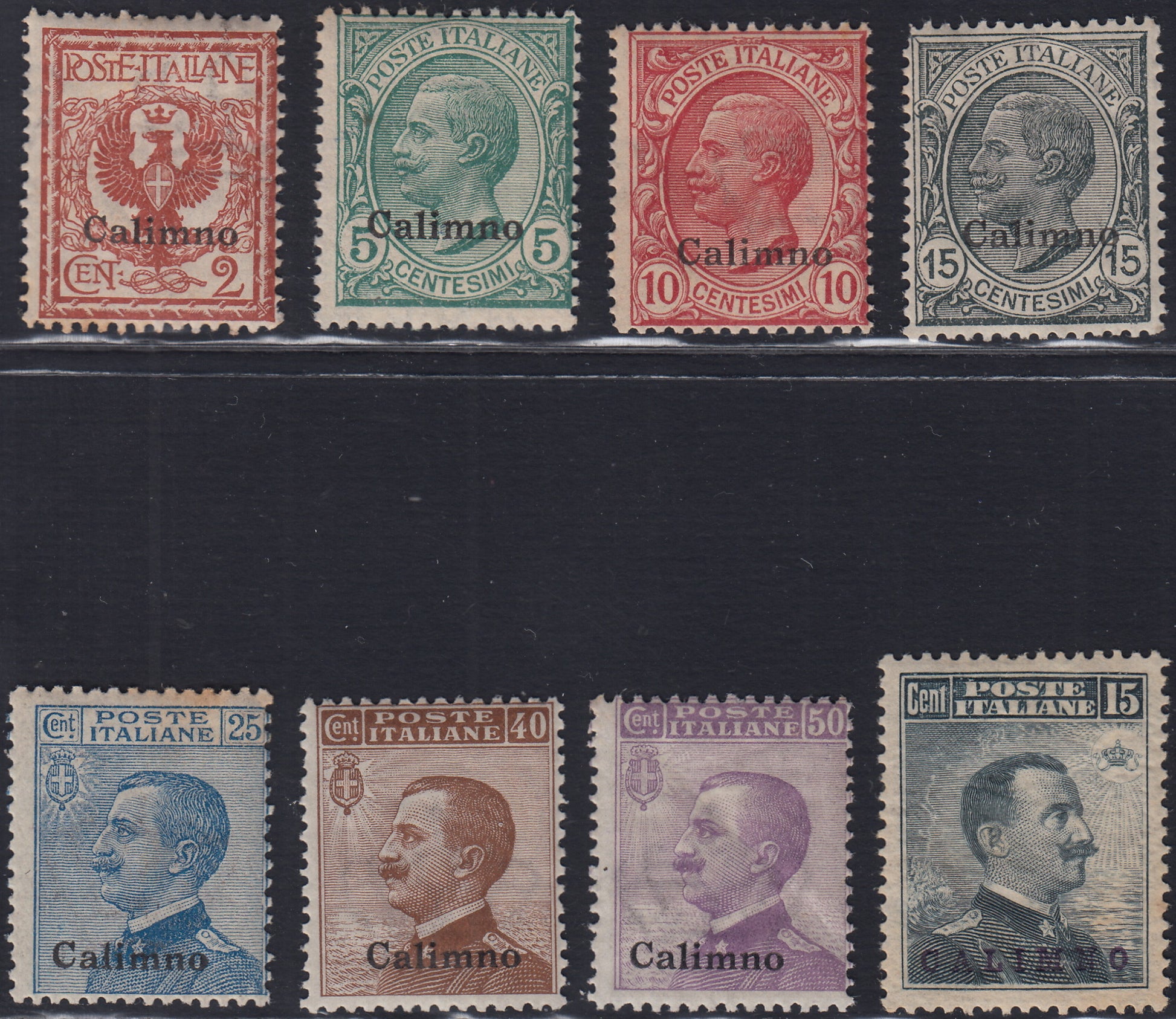 1912 - Francobolli ordinari di Regno soprastampati CALIMNO, sette valori nuovi con gomma integra