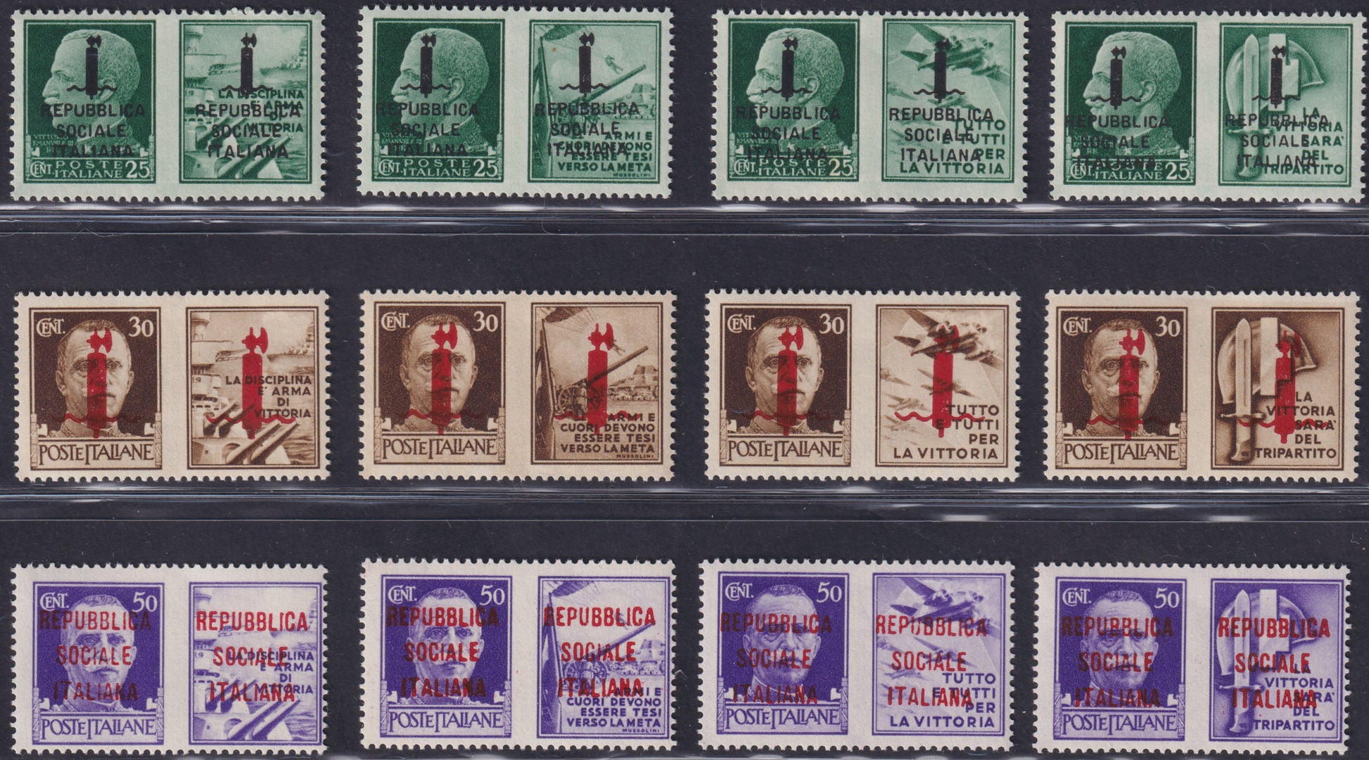 FF213 - 1944 - Propaganda di Guerra, soprastampa sulle due sezioni, tiratura di VERONA serie completa di 12 esemplari nuovi gomma integra (49/60)