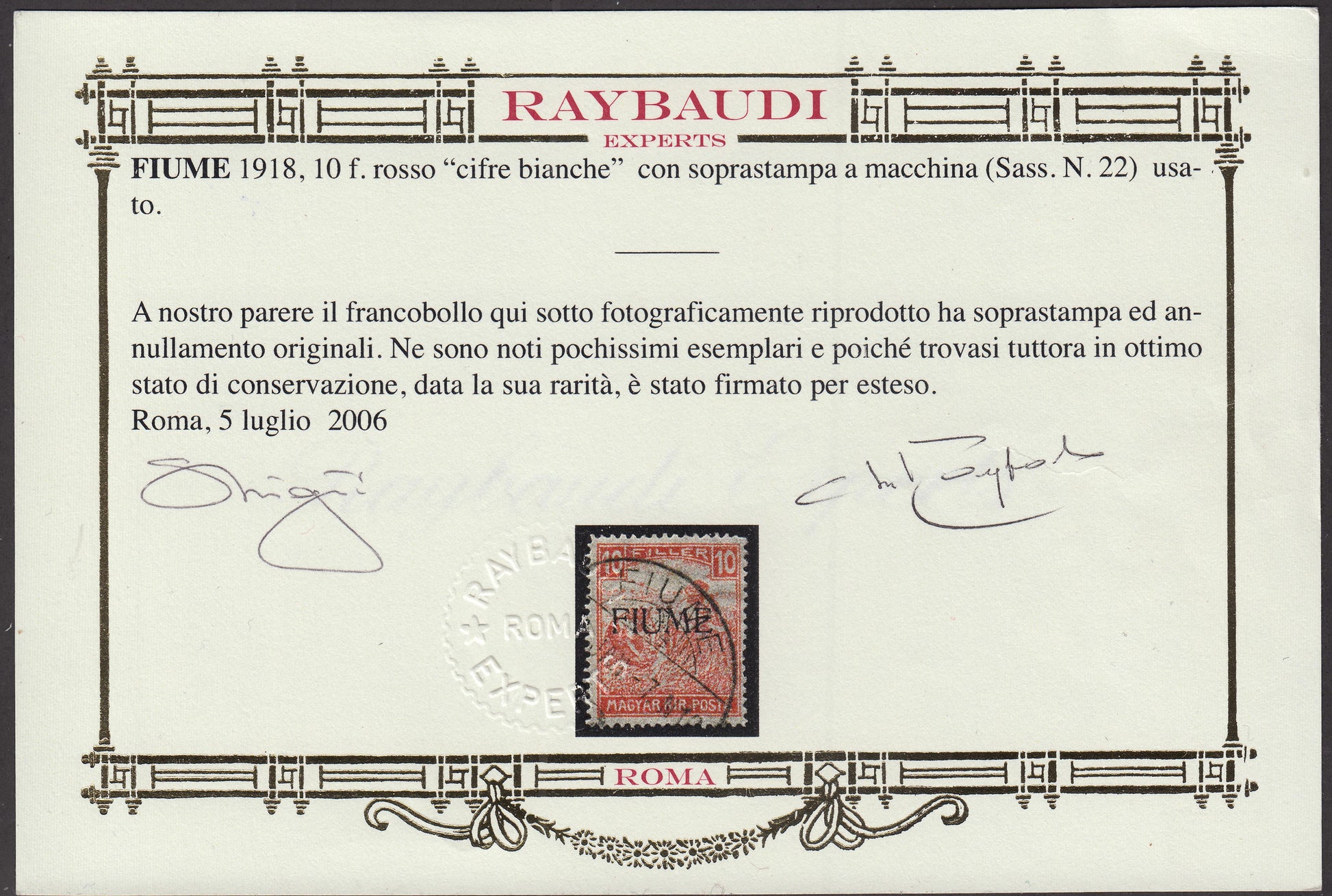 Fiume194 - 1918 - Francobollo di Ungheria 10 filler rosso cifre bianche con soprastampa a macchina usato (22)