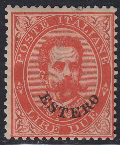 LEV6 - 1881/83 - Levante, Emissioni Generali, Umberto I L. 2 vermiglio soprastampa ESTERO nuovo con gomma (17)