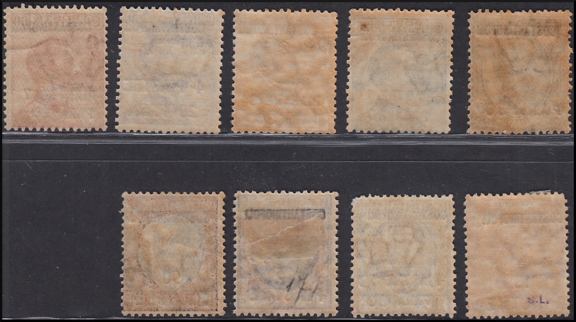 1923 - Francobolli soprastampati con nuovo valore in piastre e para e scritta COSTANTINOPOLI In alto, nove esemplari nuovi con gomma originale
