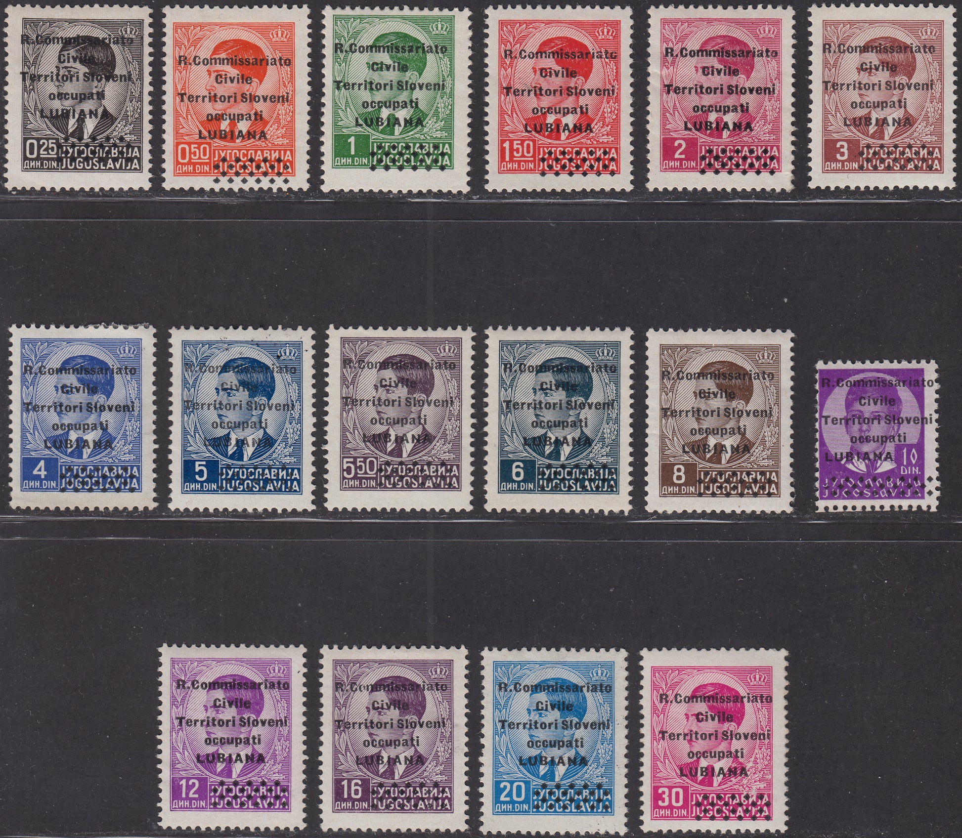 1941 - Occupazione Italiana della Lubiana, francobolli di Posta ordinaria Jugoslava soprastampati R. Commissariato, nuovi gomma originale